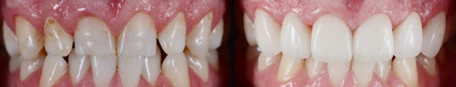 極薄のセラミックのシェルを貼り、歯並びや色を、短期間で改善します。